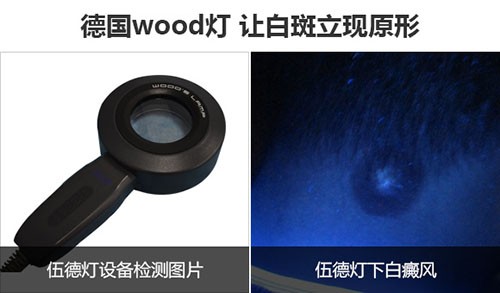 在德国wood灯检测下,白癜风皮损为纯白色,与周围正常皮肤对比鲜明,界限清楚,并可与其他白斑疾病相鉴别。